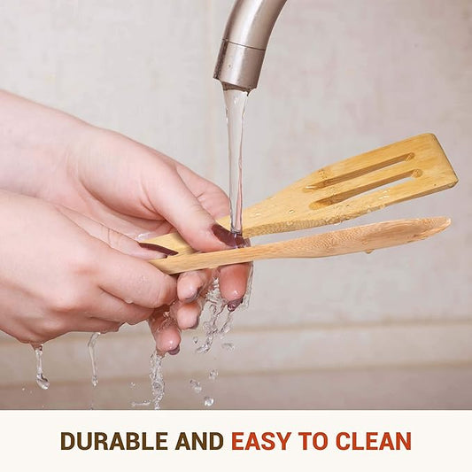 Bamboo Kitchen Utensils, 7Pcs Cooking Utensils Set with Holder