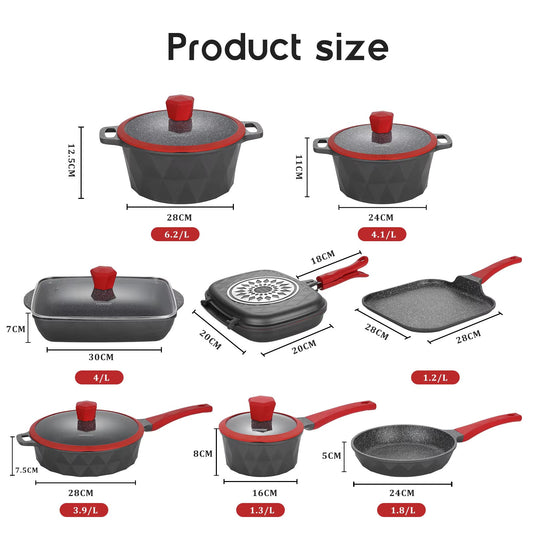 DONNOR 15-Piece Non-Stick Cookware Set | Premium Aluminum Pots & Pans with Glass Lids | Induction & Gas Compatible - Dark Grey