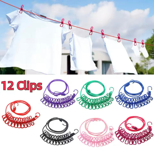 Portable Clothesline with 12 Clips Dryer Clothes Rope