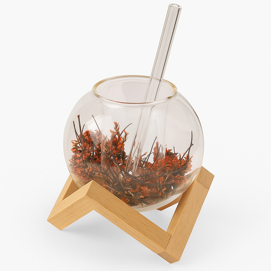 Bubble Glass Cup with Bamboo Lid & Straw