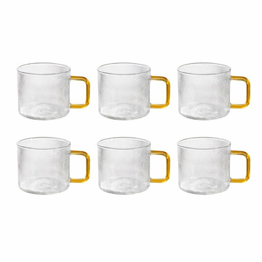 Pack of 6 Textured Glass Mug with Colorful Handle – Elegant Tea & Coffee Cup