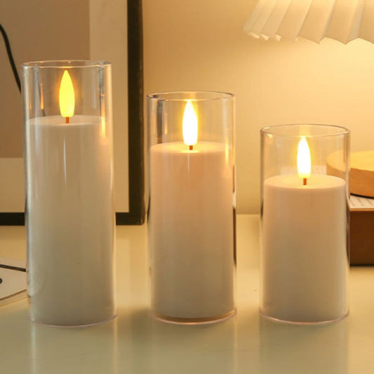 Luxury Crystal LED Flameless Candle Set (Set of 3) – Warm Glow Decorative Lights