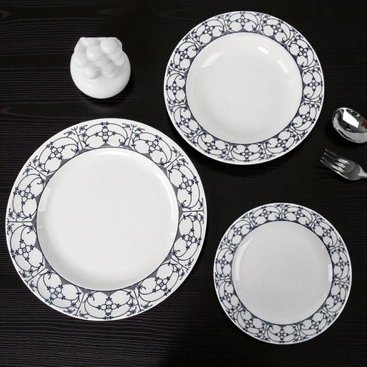 Porcelain Plate Set of 18 (Black Blue) | Elegant Dinnerware Collection Adornia Pakistan