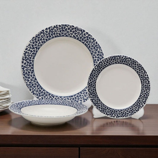 Danny Home 18-Piece Porcelain Dinner Set – Elegant White & Blue Plate Collection | Adornia.pk
