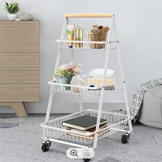 “3-Tier Foldable Kitchen Rack – Mobile Fruit and Vegetable Cart”