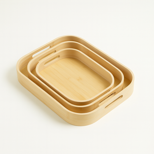 2-Piece Bamboo Serving Tray Set with Black Metal Handles