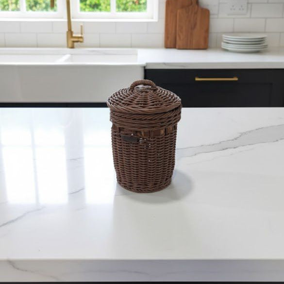 The 3Pcs Handmade Cylindrical Baskets with Lids by Ziba bring artisan-style weaving and modern practicality into a beautifully coordinated storage set. Each basket is hand-woven from high-quality polypropylene plastic, giving the appearance of traditional wicker while offering far better durability, hygiene, and longevity.With three graduated sizes and matching lids, this set is ideal for organizing cosmetics, accessories, desk items, bathroom essentials, or everyday household clutter — all while adding a refined, natural touch to your décor.