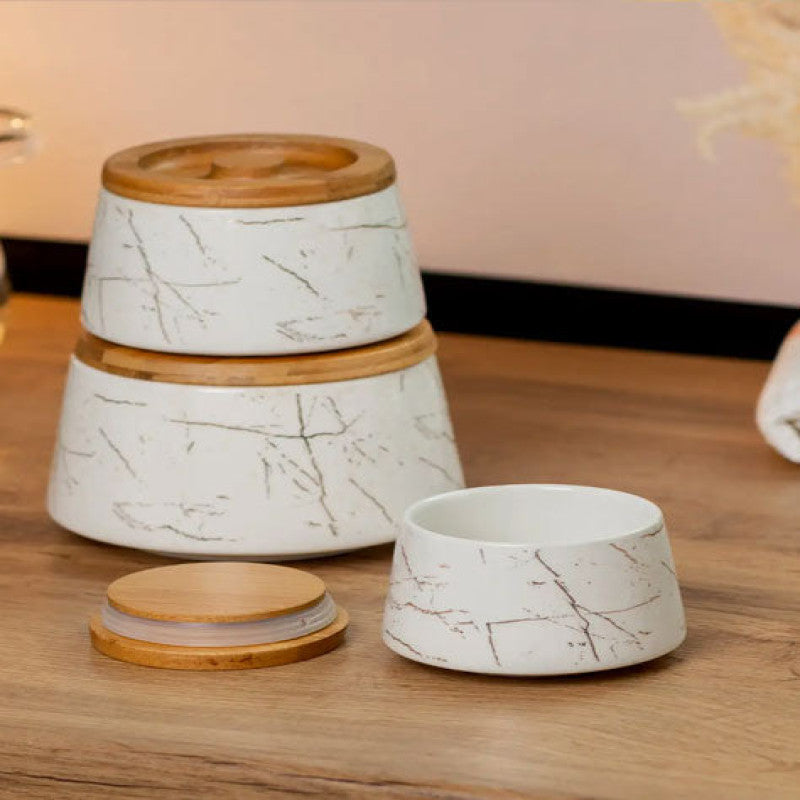 Ceramic Containers with Bamboo Lid 3 Pcs jars