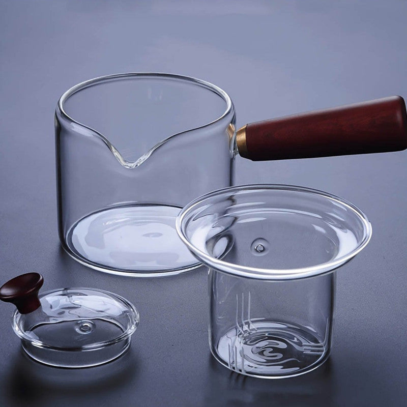 Dual Chamber Glass Tea Infuser with Wooden Handle – Heat-Resistant Teapot for Loose Leaf & Herbal Tea | Adornia.pk