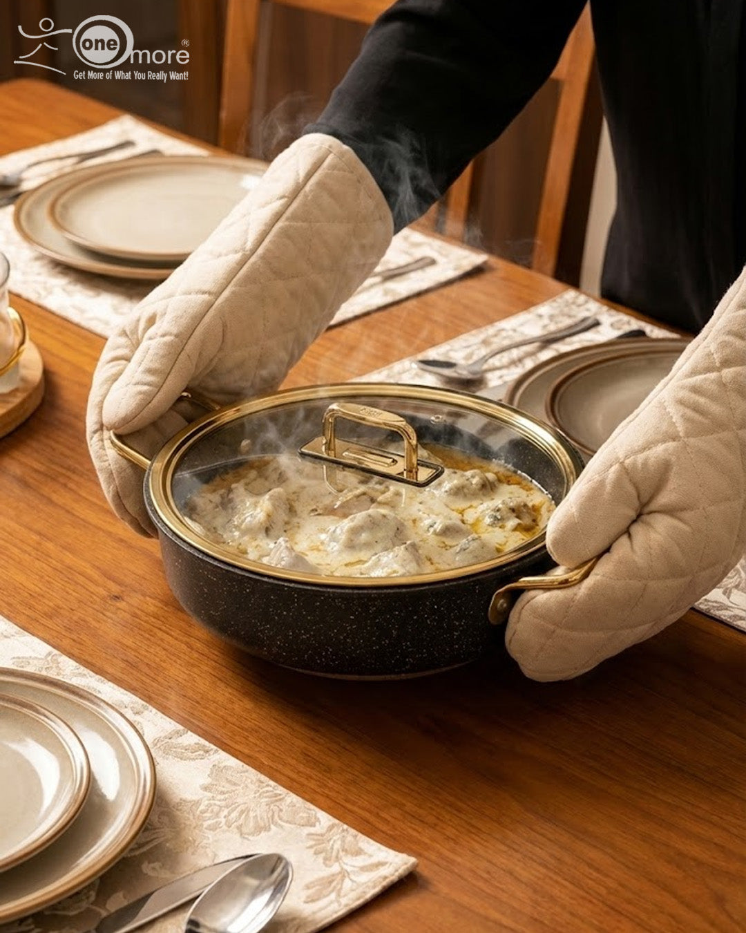 Engineered with a granite-reinforced non-stick coating, this cookware delivers smooth, low-oil cooking for healthier meals. The durable die-cast aluminium body ensures rapid and even heat distribution—ideal for frying, simmering, sautéing, boiling, and daily home cooking.