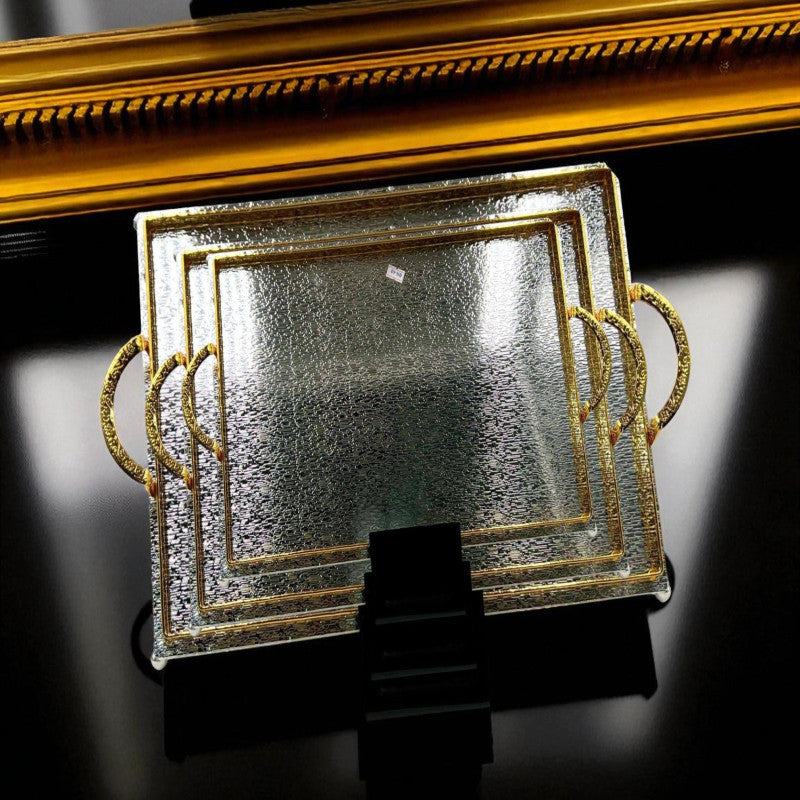 Gold & Silver Elegant Metal Tray with Golden Detailing & Sleek handles – Best for elite servings (3 Sizes)