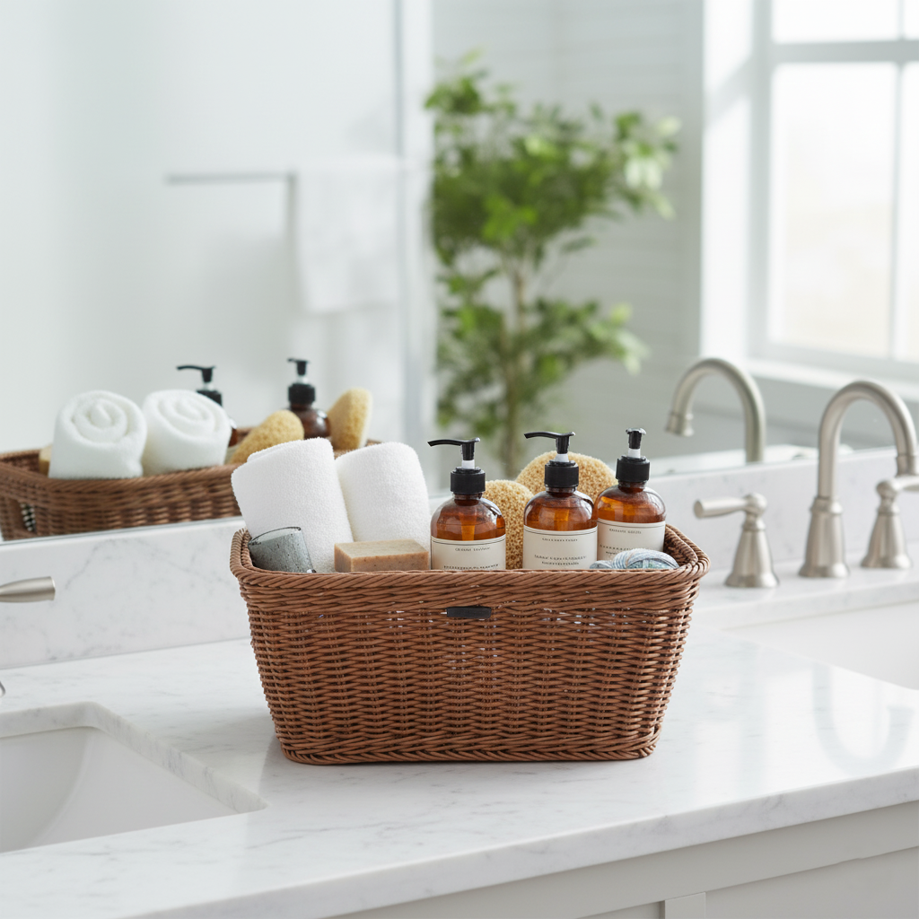 Add a touch of artisanal elegance and practical storage to your home with the Handmade Rectangular Basket with Handles (51007) by Ziba. Designed with a braided weave texture that mimics classic handwoven baskets, this lightweight yet durable plastic basket combines aesthetic charm with everyday functionality. Perfect for fruits, bread, snacks, or general household organization, it brings style and convenience to any room.