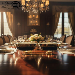 - Optimal Food Warming: Each chafing dish comes with a sleek gold-tone metal stand with built-in compartments for candles/fuel burners (not included), providing gentle and consistent heat to keep your food at the ideal serving temperature.