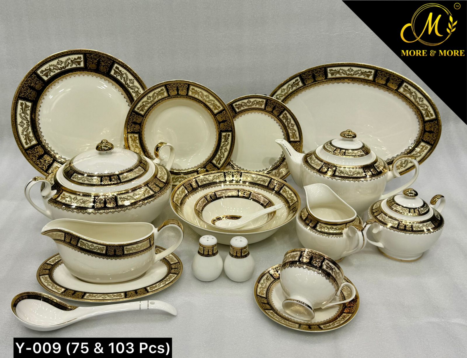 103-Piece Set for 12 people – A comprehensive set designed for larger families or festive occasions, offering everything you need to serve a sophisticated dinner.