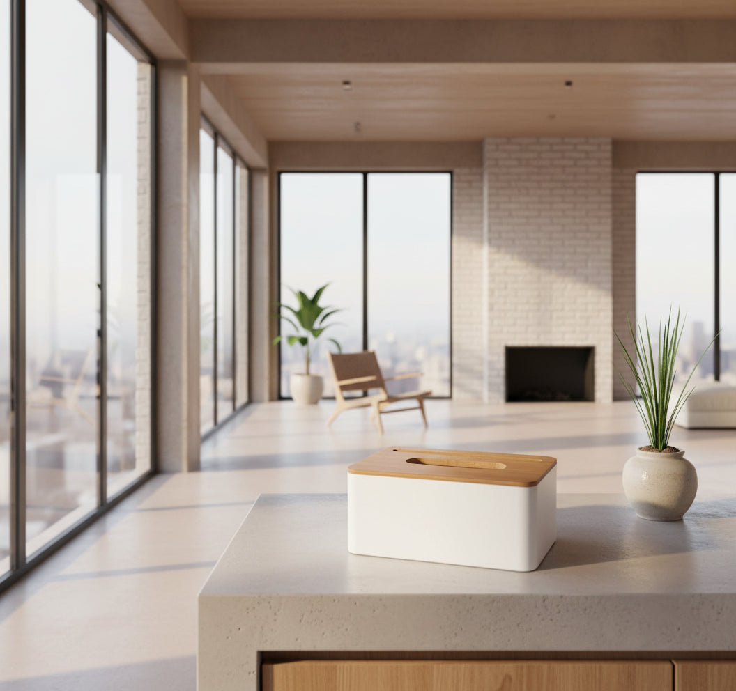 Upgrade your space with this Modern Tissue Box featuring a natural bamboo lid and built-in phone holder. Designed for convenience and style, it keeps tissues neatly concealed while offering a slot to hold your phone for hands-free viewing. Perfect for bedrooms, living rooms, offices, and bathrooms. Durable, elegant, and easy to clean—an ideal organizer for any modern home.