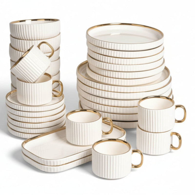 Porcelain Cream Shine Lining Dinner Set – 32 Pieces | Premium Ceramic Crockery Set