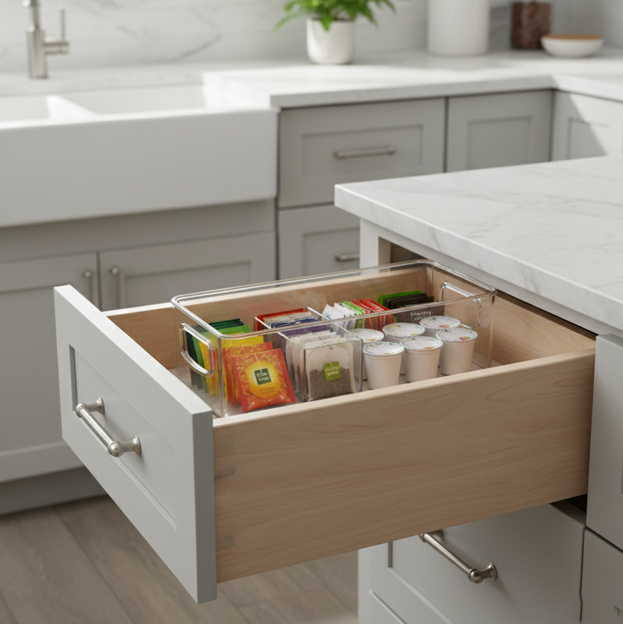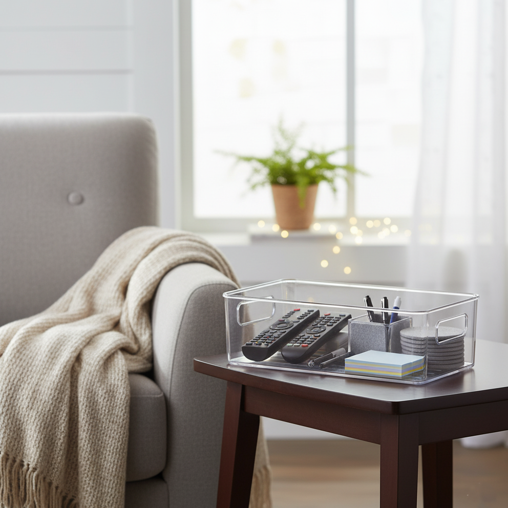 The PureView Acrylic Organizer Tray with Handles is a sleek, durable, and crystal-clear storage solution designed to keep your essentials neatly arranged and easy to access. Made from premium-quality acrylic, it offers a clean, modern look that blends effortlessly with any home, kitchen, or workspace setup. Lightweight yet sturdy, it comes with built-in handles for smooth portability and everyday convenience.