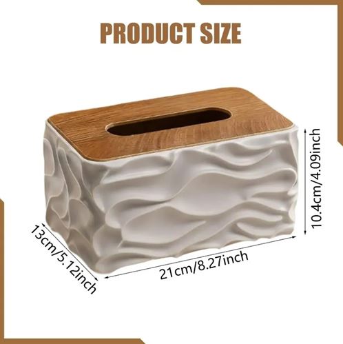 Stylish Wavy Tissue Box Cover with Wooden Lid – Modern Textured Napkin Holder