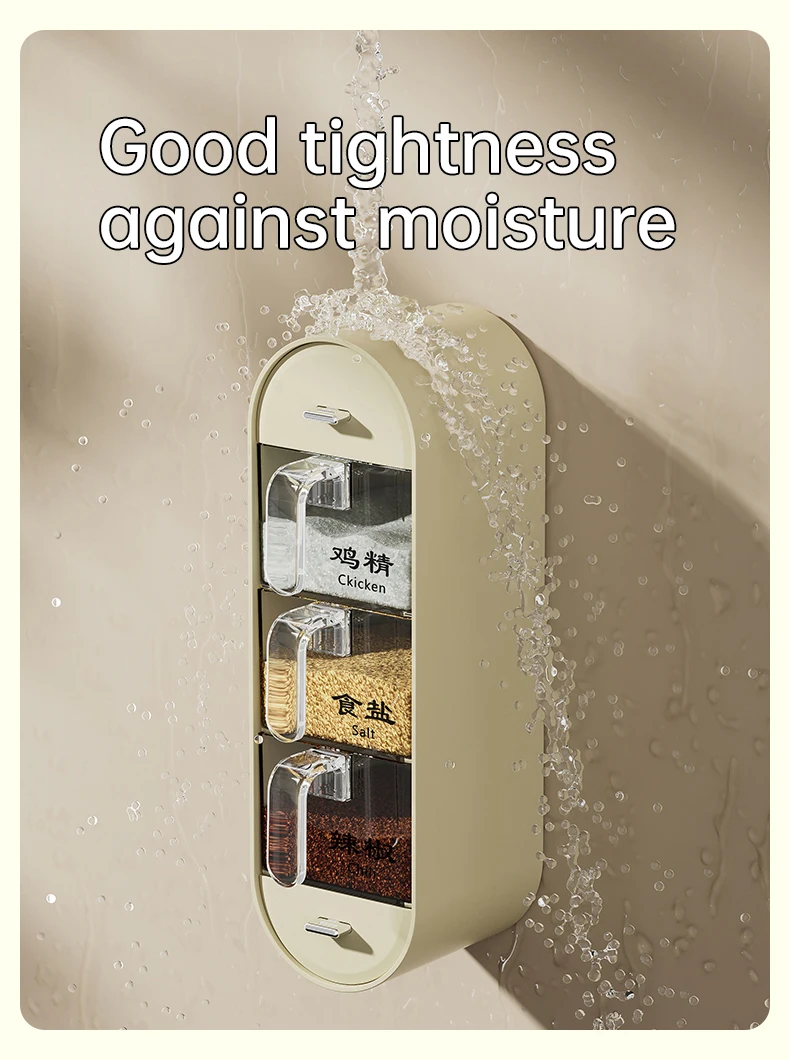 Wall mounted Seasoning Box Salt Pepper Spice Rack Jar Sugar Bowl Spice Box Organizer Kitchen Spice Organizer Set Storage Shelf