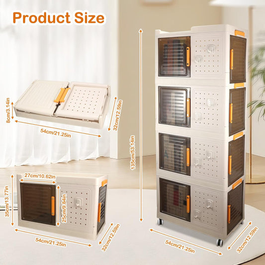 Narrow Storage Cabinet Multifunctional Foldable Storage Cabinet with Wheels and Hooks