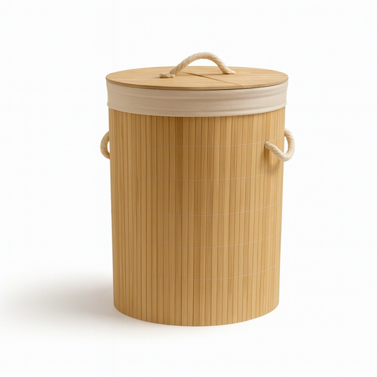 Round Bamboo Laundry Basket – 35x50cm | Adornia.pk