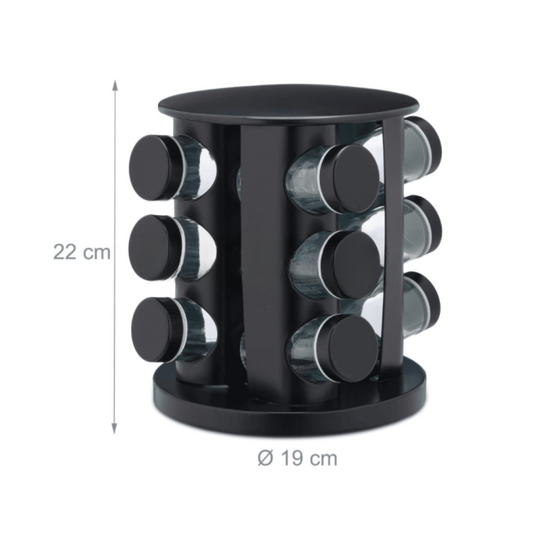 12 Pcs Revolving Spice Rack – Black – Convenient & Stylish Storage | Adornia.pk