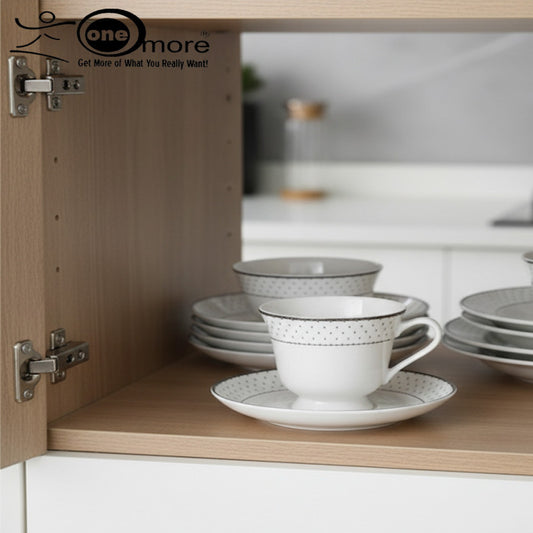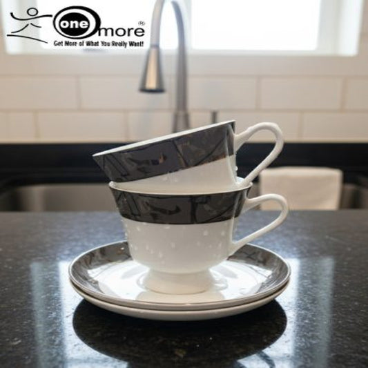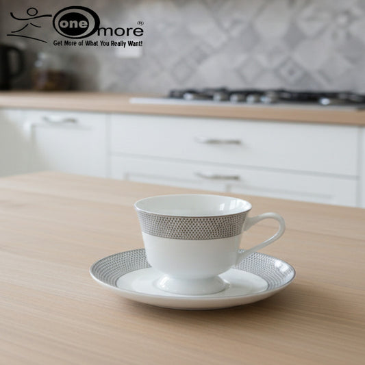 12-Piece Cup & Saucer Set with Silver Rim Accents