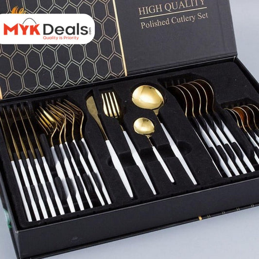 24 PCs Premium Steel Cutlery Set-White Over Golden