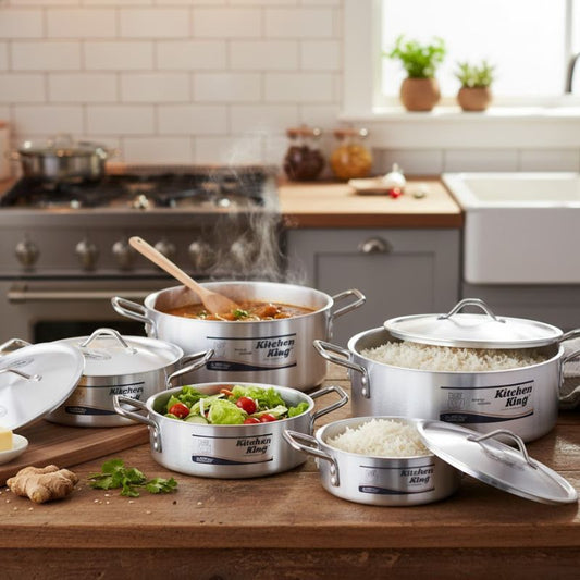 Kitchen King Indiana 10-Piece Premium Cookware Set – Heavy-Gauge Aluminium Pots | Adornia.pk