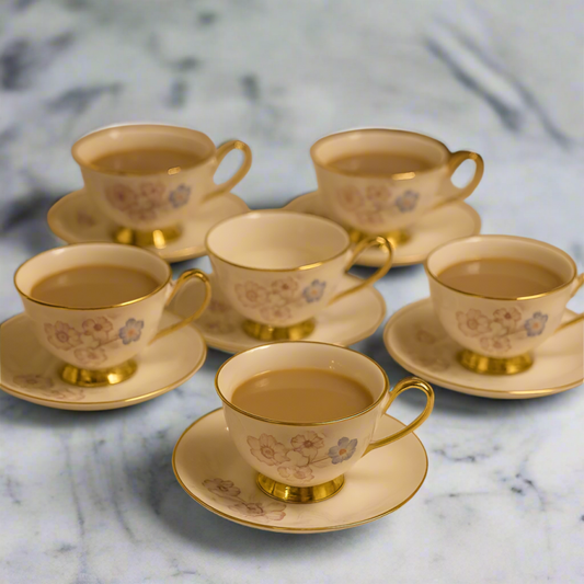 Premium 12-Piece Tea Cup & Saucer Set | Floral Pattern with Gold Rim for Home & Dining