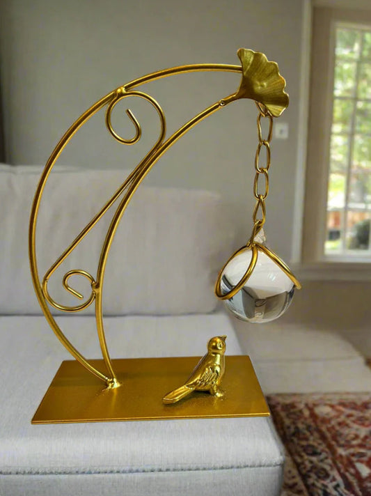 Metal Sparrow Crystal Ball Hanging For Decoration