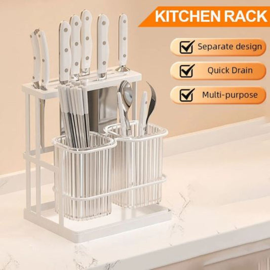 Durable Knife Storage Organizer, Kitchen Utensil Holder With Water Drain Tray, Spoon Fork Chopsticks Storage Rack