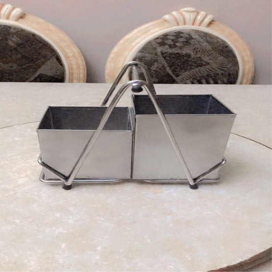 Luxury Stainless Steel Spoon Holder with Wooden Base – Dual Compartment Utensil Organizer
