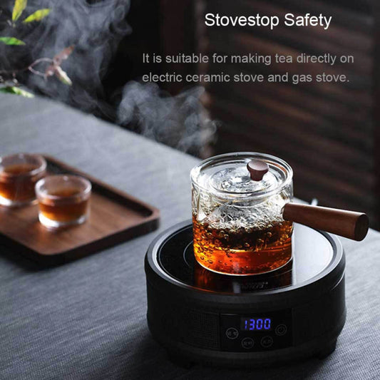 Elegant Glass Tea Infuser Pot with Wooden Handle – Premium Tea Brewing | Adornia.pk