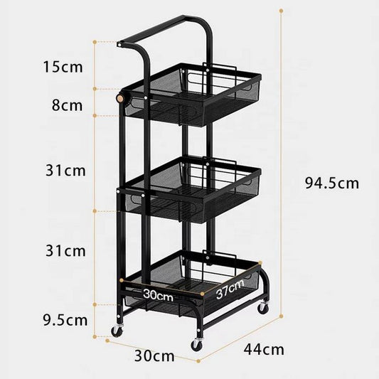 “Black 3-Layer Metal Trolley for Kitchen, Office, Home & Bathroom”