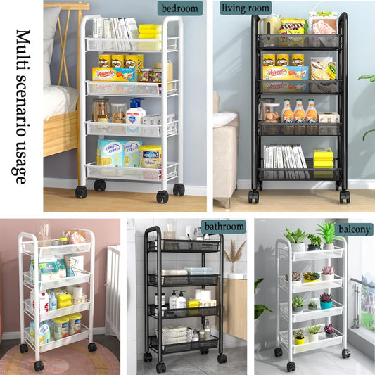 “Multi-Purpose Movable Storage Trolley with Shelving – Kitchen Cart”