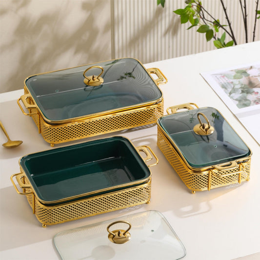 Luxury Ceramic Chafing Dish – Black/Blue with Gold Accents