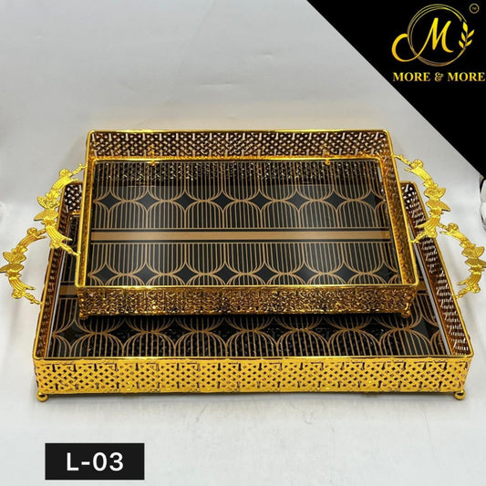 Luxury 2-Piece Glass Gold Designing Serving Tray Set