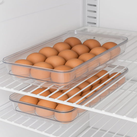 Acrylic Egg Tray 18-Eggs with Lid – Clear Stackable Organizer