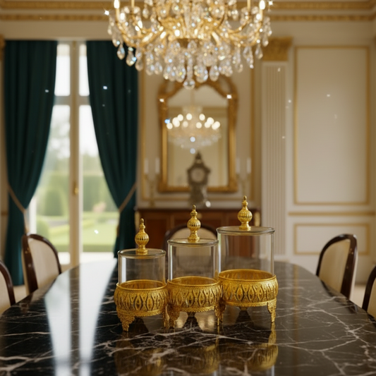 3- Luxurious Gold Pedestal Jars Set Premium Quality