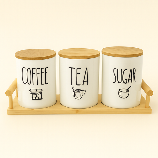 Ceramic Tea Coffee Sugar Jar Set (Arabic)