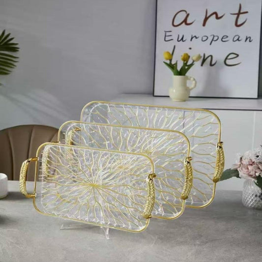 Modern Luxurious Glass Serving Tray 3 Pieces Set