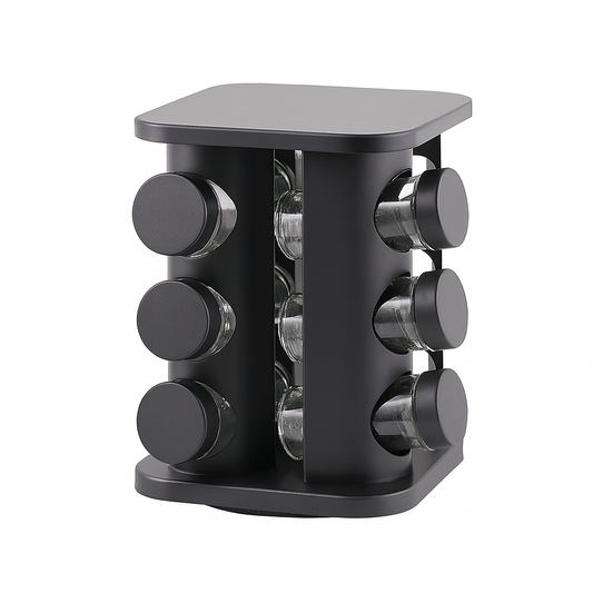 Modern Matte Black Revolving Spice Organizer (12 Pc.)
