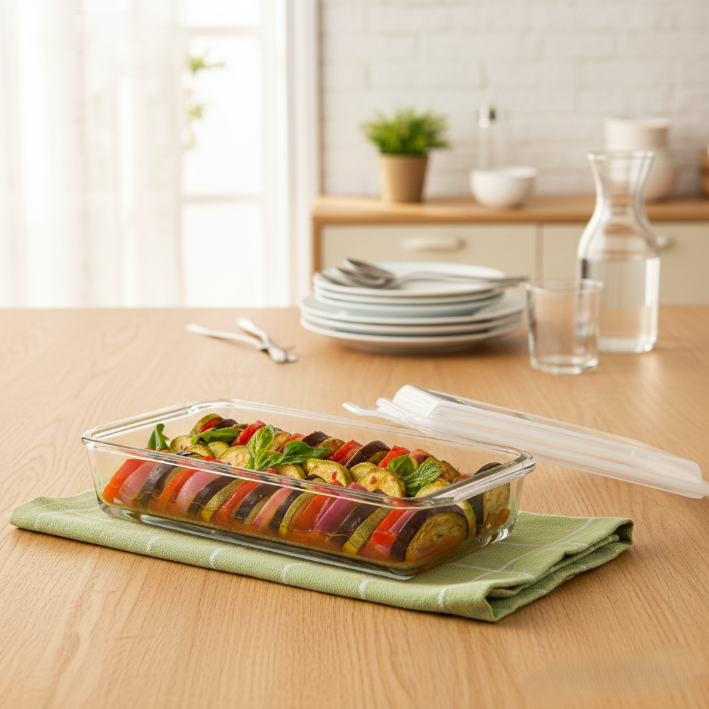 The Limon 1.4L Rectangle Glass Container with Lid (2050) is a versatile, airtight storage solution designed for everyday kitchen use. Its transparent glass body allows quick content identification, while the silicone-sealed lid keeps food fresh, preventing moisture, odors, and pests from affecting your items. Ideal for storing dry goods, leftovers, cooked meals, or meal-prepped portions, this container is perfect for organized and hygienic kitchen storage.