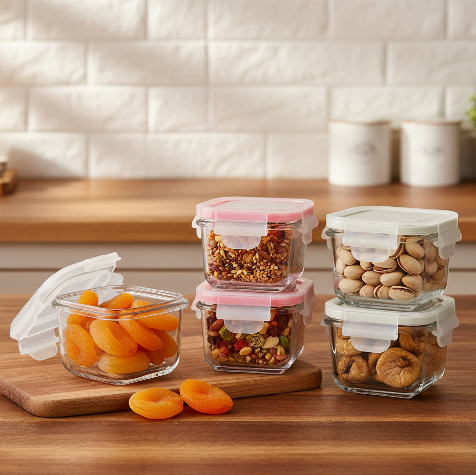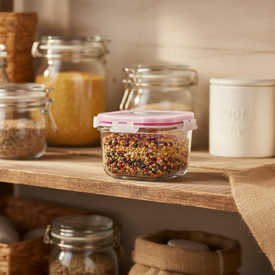 - Transparent glass body — see contents instantly without opening the container.