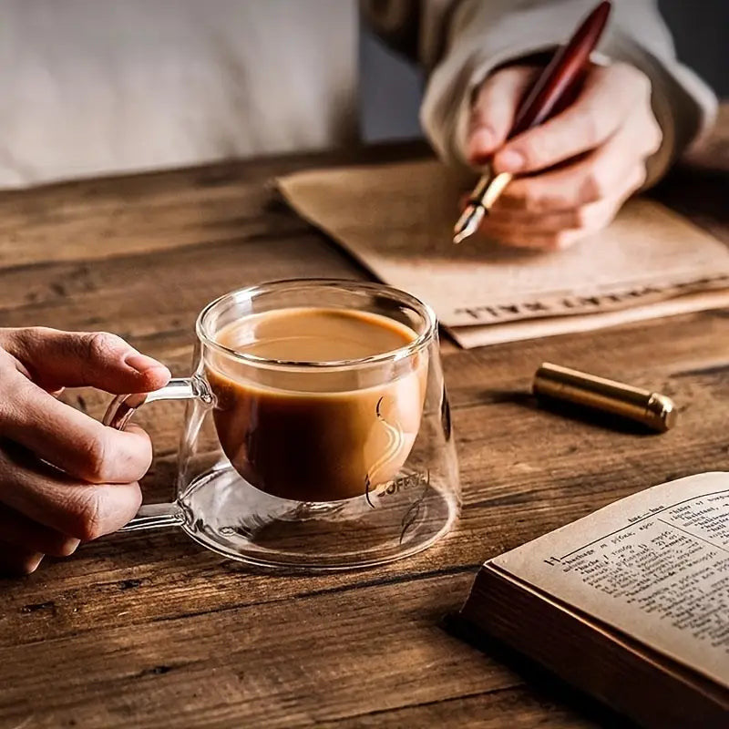 Double-Walled Glass Coffee Mugs – 200ml Heat-Resistant Espresso Cups for Hot & Cold Drinks | Adornia.pk