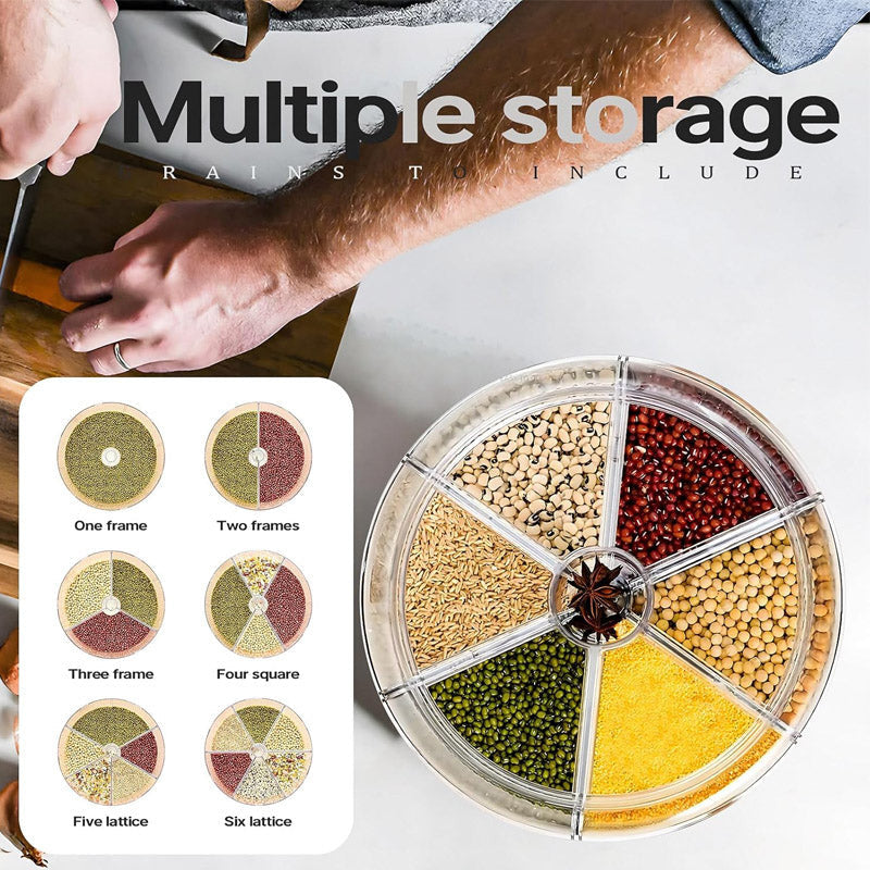 - This grain dispenser has a 360° rotating design, so you can pick the dry food you need at will by rotating the dispenser.