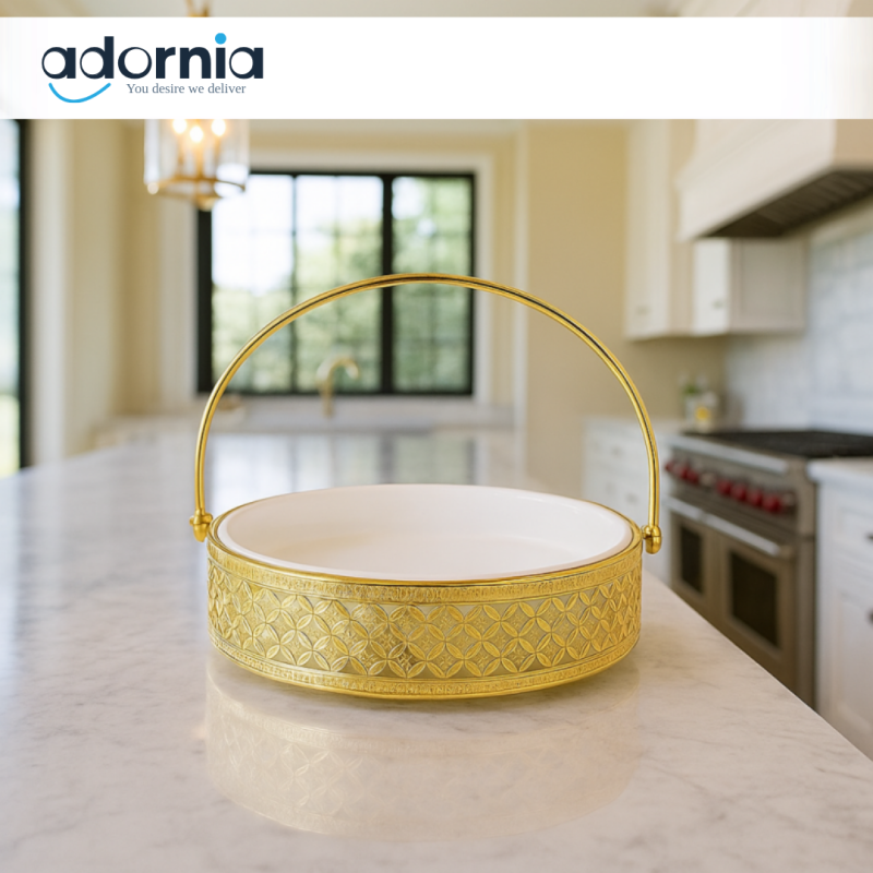 Elevate your dining experience with this 8" Round Luxury Serving Plate featuring a sleek stand. Crafted with an elegant gold finish, it serves as both a functional dish and a sophisticated display piece. Perfect for presenting appetizers, desserts, or decorative arrangements, this plate combines style and practicality to enhance any table setting or décor.