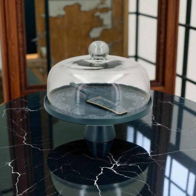 The Cake Dish SeaGreen with Glass Cover from the 4c collection combines practicality with refined design. Its durable sea green base provides a stable platform for cakes, while the transparent glass cover protects your baked goods from dust and maintains freshness. Perfect for professional use or elegant home display, this dish allows easy viewing of your creations while preserving their quality. Its expert craftsmanship ensures both functionality and aesthetic appeal in one essential kitchen accessory.