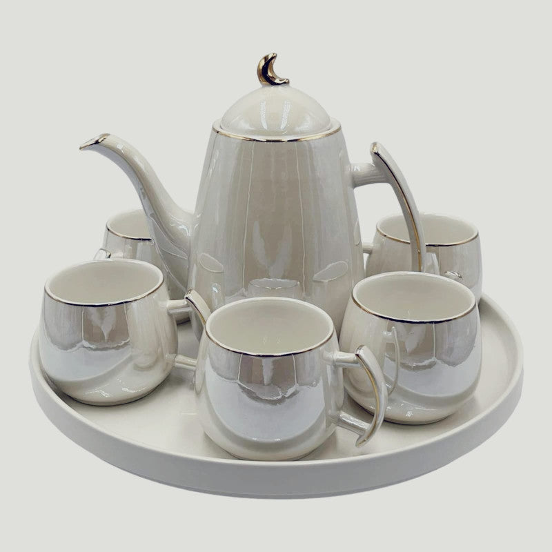 Introducing our Ceramic Tea Set, a delightful ensemble featuring 6 cups, 1 kettle, and 1 tray, designed to elevate your tea enjoyment with every pour. Crafted from high-quality ceramic, each piece blends functionality with elegance, making it perfect for daily use or special occasions.